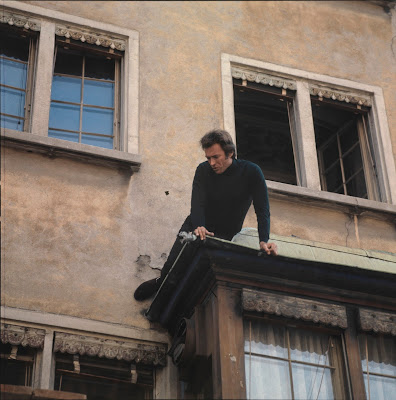 Eastwood’s character Hemlock is dangling on his climbing rope, but through the